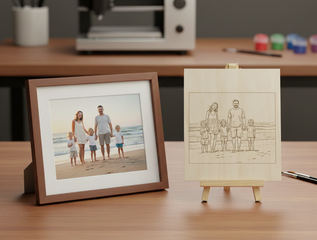 Transforma tus propios diseños, fotos, logos, ilustraciones o mensajes en un hermoso kit de arte en madera para pintar.